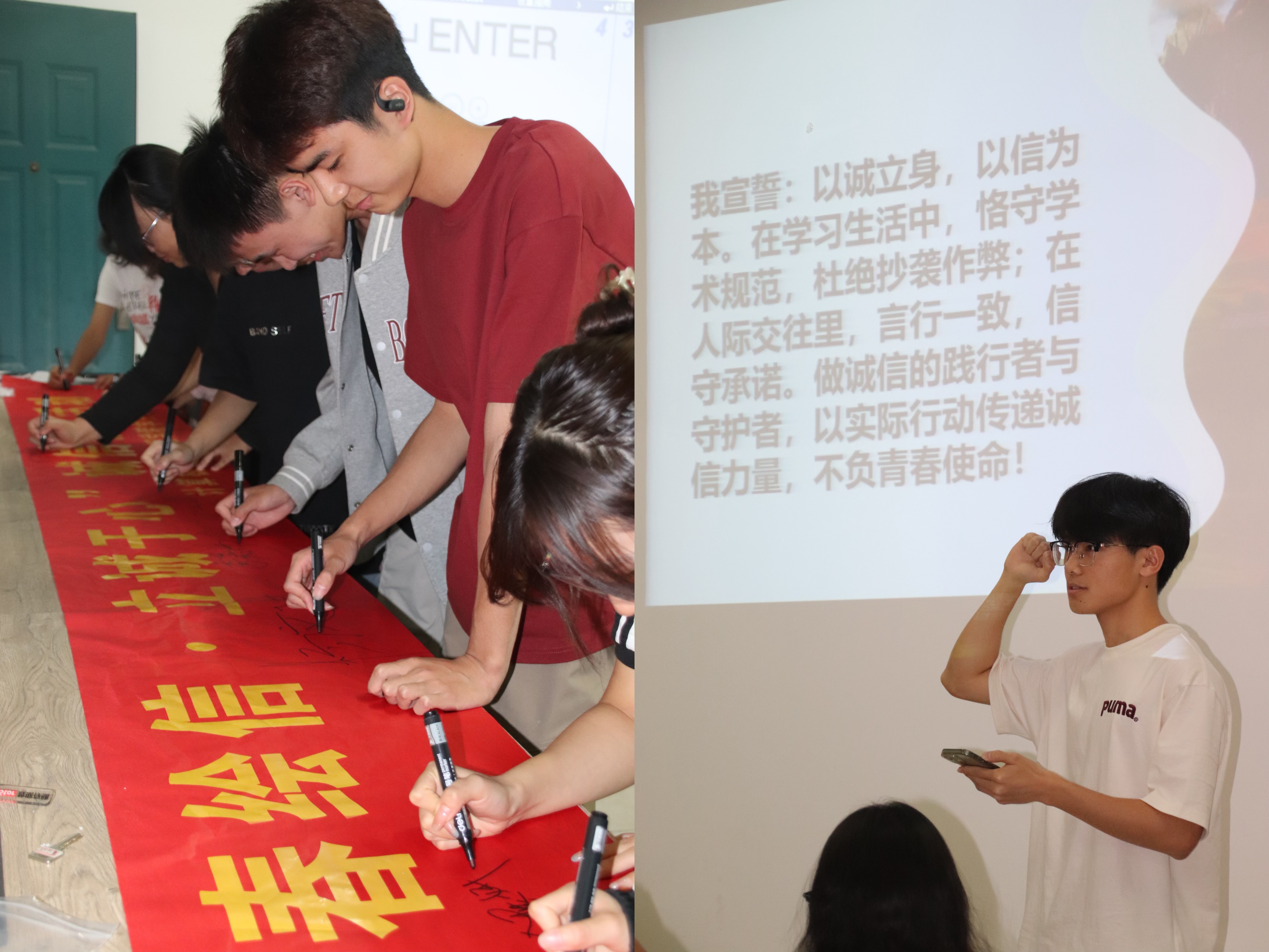 活动尾声,同学们在诚信横幅上郑重签名。助学部陈建霖同学表示:“这份签名不仅是承诺,更是成长的见证。未来它将时刻提醒大家守信如初。”
