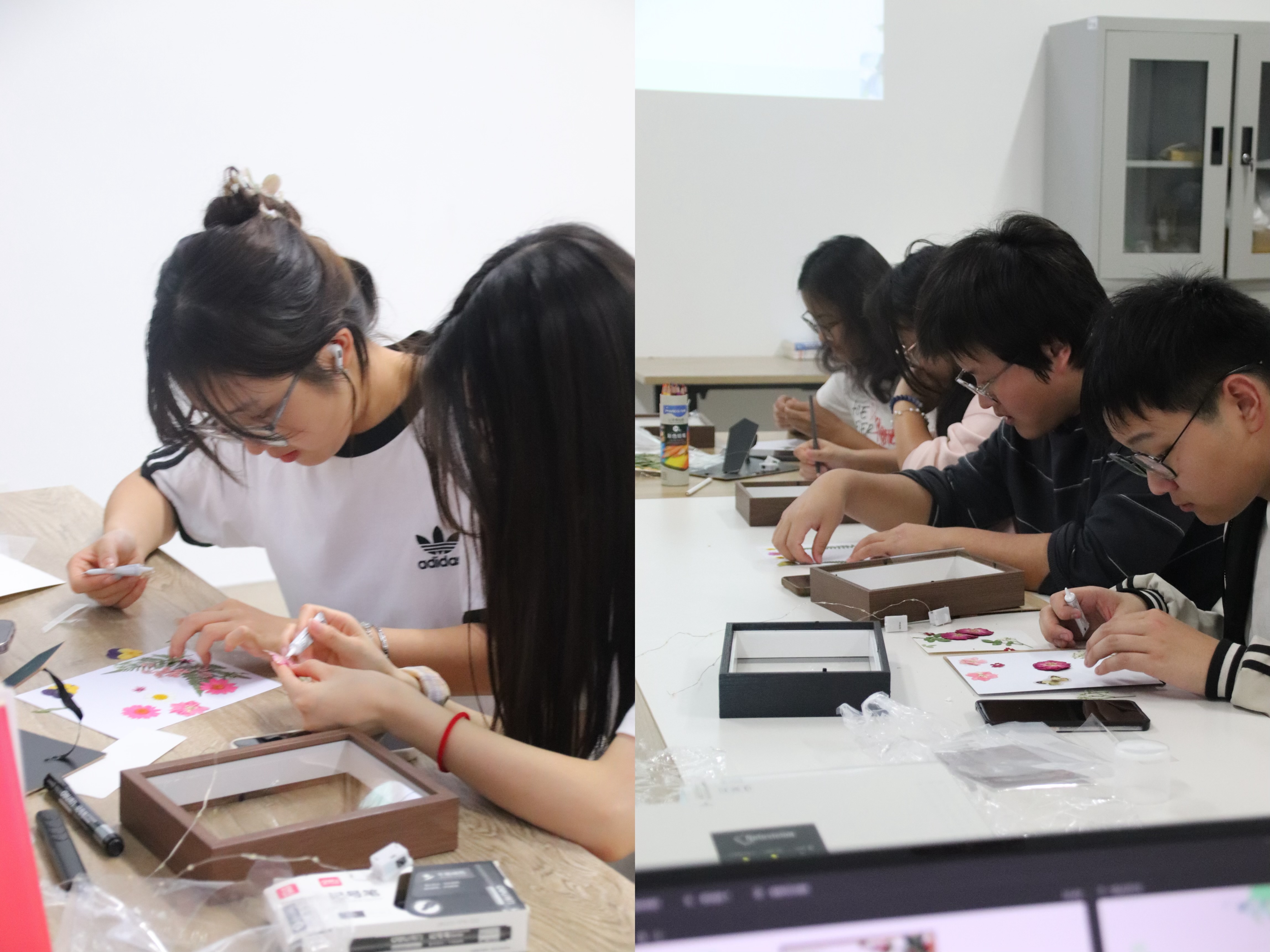活动以“春”为媒,将诚信教育寓于自然意象。助学部范晓雨同学以“诚信如春,润物无声”为引,阐释活动深意:“春是希望的象征,诚信则是立身之本。每一份资助都承载着社会的信任,希望同学们以手作寄情,在创作中体会诚信的力量。”手工环节中,同学们以木质相框为载体,用嫩绿藤蔓、樱花贴纸等春日元素装点边框,寓意诚信如春意般滋养心灵;相框内页则通过彩铅书写“诚以立身”“信达天下”等箴言。制作过程中,同学们互相协作,分享对诚信的理解。受助员工李同学感慨:“相框上的每一片叶子都提醒我,诚信不仅是承诺,更是对他人帮助的珍惜。”