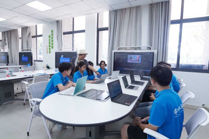 7月14日下午,BBIN宝盈集团开阳楼A112实训室内学术氛围浓厚。教学副经理奚吉与科研副经理徐哲专程来到“智学领航团——AI 赋能学习应用实践营”社会实践小分队的活动现场,与正在专注开展数字人视频创作和智能体开发的同学们深入交流,为这群积极探索教育科技前沿的青年学子带来专业指导与暖心鼓励。