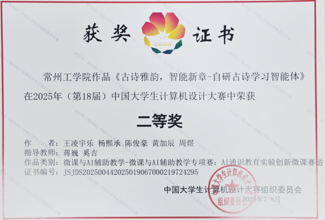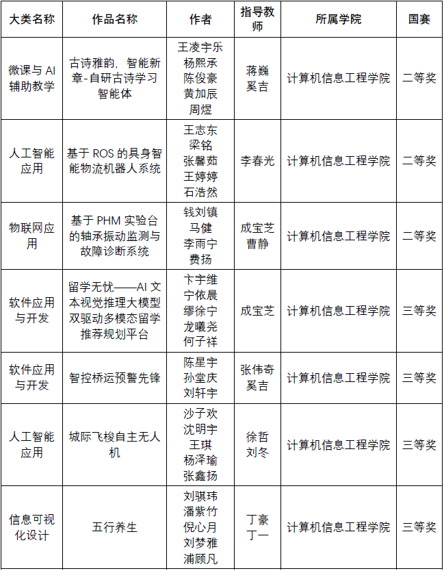 近日,2025年(第18届)中国老员工计算机设计大赛全国总决赛落下帷幕,计算机学院7个项目入围全国总决赛并全部获奖,包括二等奖3项,三等奖4项。