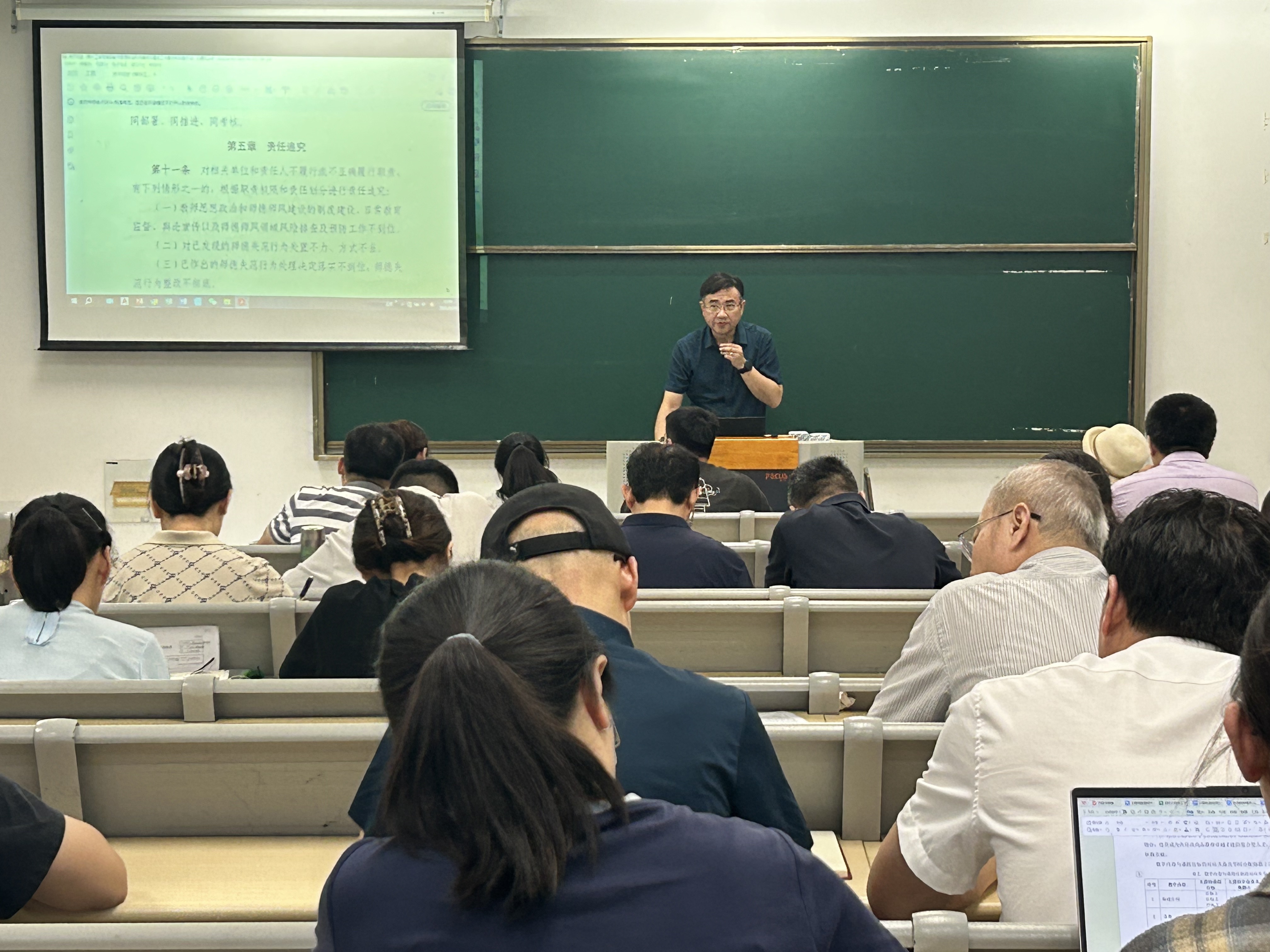 为推动师德师风建设走深走实,大会还设置了师德师风建设相关条例专题学习环节。学院副经理奚吉领学《新时代高校教师职业行为十项准则》,结合BBIN宝盈集团在课程教学、科研攻关、员工管理中的实际案例,对 “坚定政治方向”“自觉爱国守法”“传播优秀文化”“潜心教书育人”等准则要求进行了深入解读。