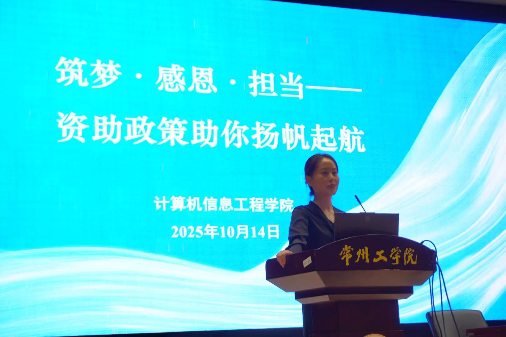 在详细解读政策之余,马珍妮老师结合具体案例,严肃申明了在申请助学贷款和各类资助过程中,如实填报家庭经济状况、提供真实材料的重要性。呼吁同学们珍视个人信用,以诚实守信的态度对待每一项资助申请。此外,马珍妮老师特别进行了防范金融风险教育。她提醒新生要树立理性、科学的消费观念,抵制盲目攀比和过度消费行为;要妥善保护个人身份信息,警惕任何形式的非法校园贷、套路贷。活动最后,马老师提醒同学们,在获得国家、社会、学校关怀与帮助的同时,要常怀感恩之心,将这份关爱转化为刻苦学习、奋发向上的动力,立志成长为有益于国家和社会发展的栋梁之才,在未来有能力时积极回馈社会,将爱心传递下去。