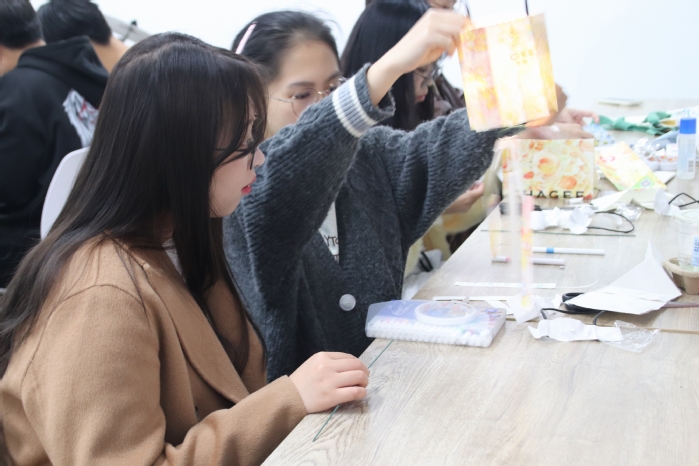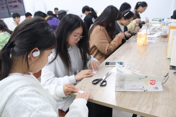 在简单介绍活动流程与安全注意事项后,同学们开始分组全情投入到创作中——造型别致的废纸篓、古朴雅致的小扇子、精巧的收纳盒……一件件作品相继而出。活动现场气氛活跃,欢声笑语不断。裁剪、折叠、粘贴、装饰……同学们将平平无奇的废纸袋变成了兼具实用性与艺术性的精美工艺品。原本可能被丢弃的物资,在巧思与协作中获得了新生。