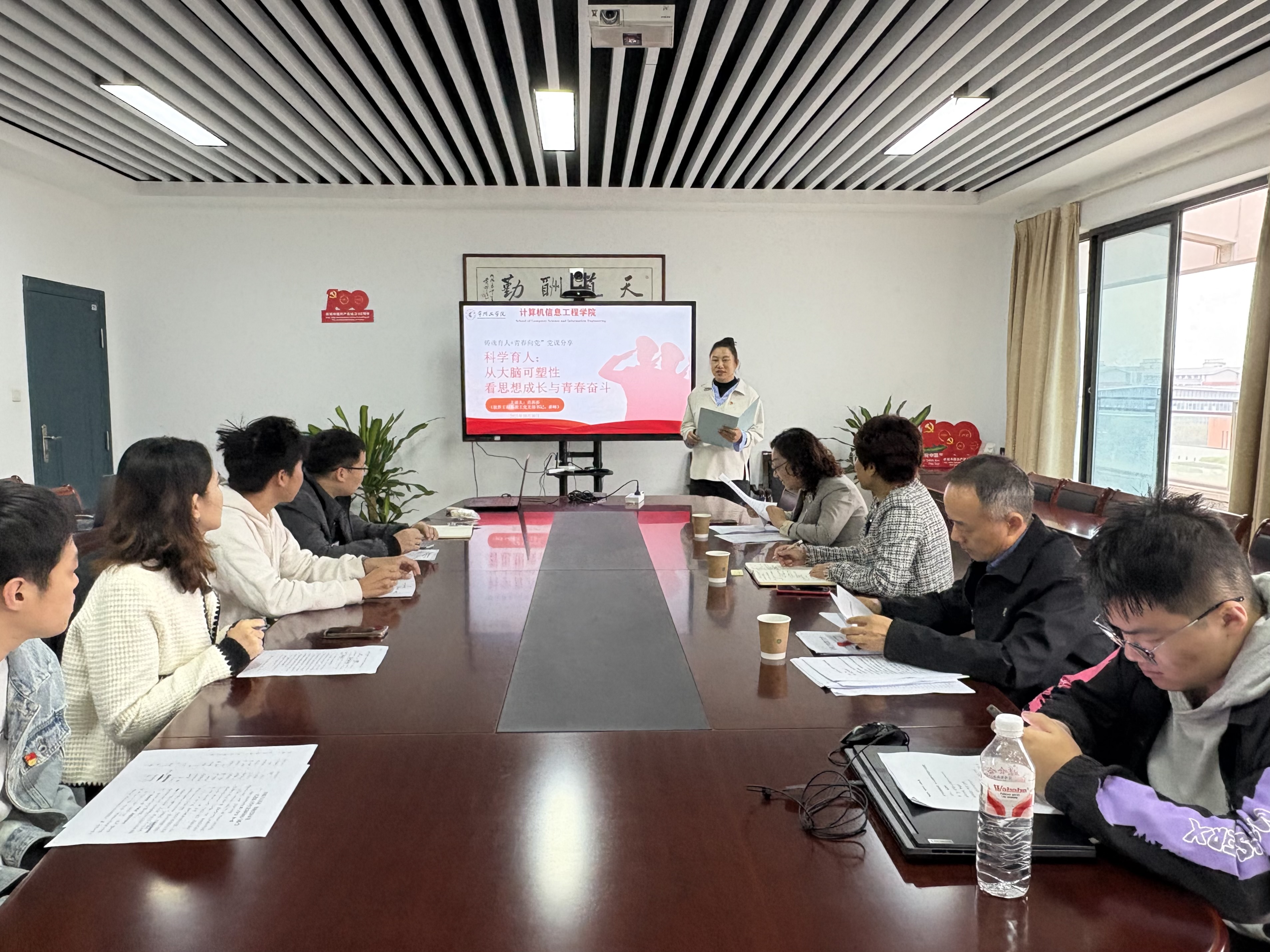 教师党员率先垂范:侯腾璇老师以《在AI终身学习时代铸魂育人,以青春力量向党而行》为题,探讨人工智能浪潮中青年的价值锚点与使命担当;乔旭老师聚焦国家战略,带来《低空经济:新质生产力的蓝天实践》,生动诠释科技赋能高质量发展的现实路径;肖莎莎老师另辟蹊径,从神经科学切入,讲述《科学育人:从大脑可塑性看思想成长与青春奋斗》,揭示理想信念塑造的科学逻辑。张旭、张有鹏、王佩等教工党员则分别围绕杨振宁的科学精神、团结奋斗的时代价值、产教融合的育人机制等议题,展开富有深度的理论阐释。