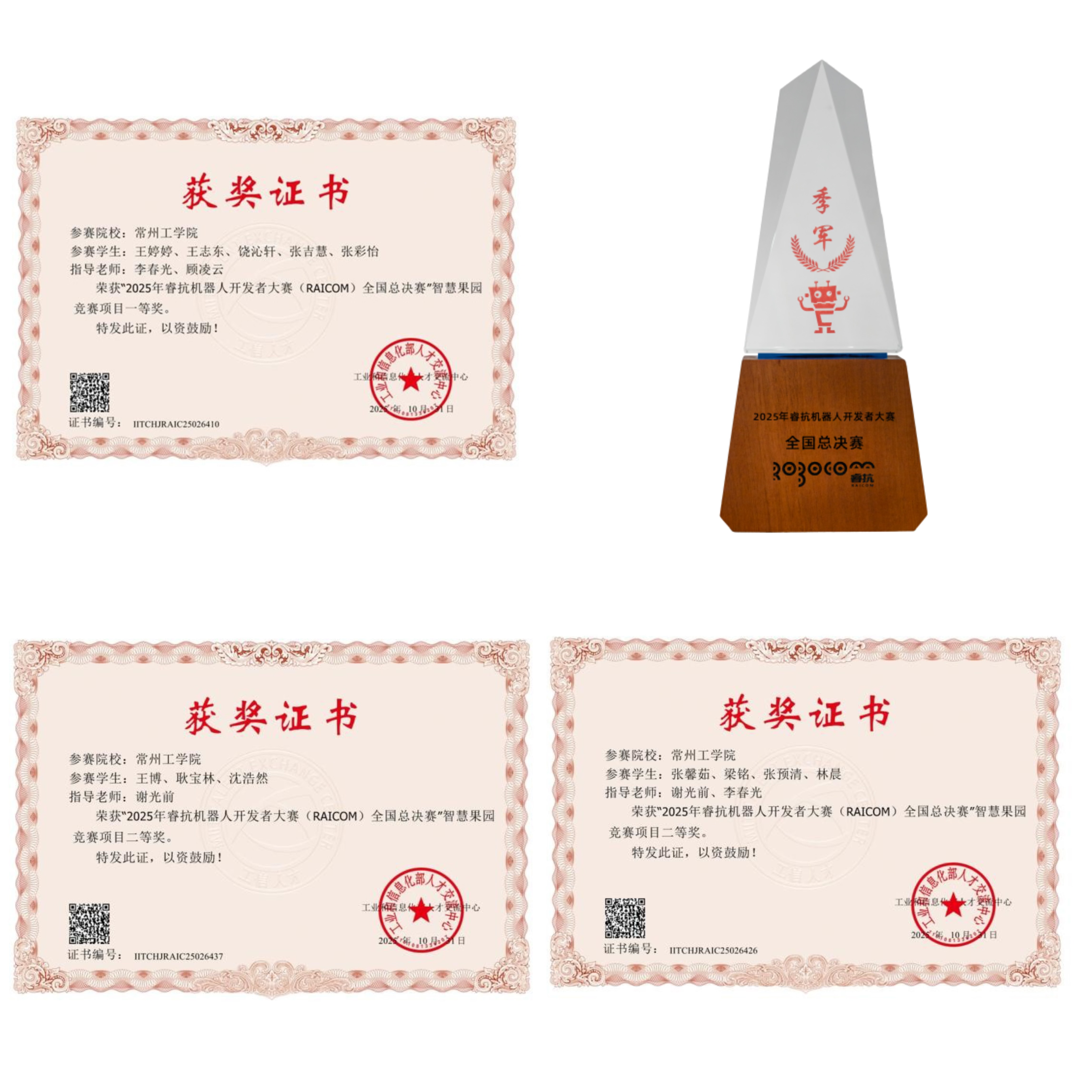 近日,由工业和信息化部人才交流中心主办的“2025睿抗机器人开发者大赛(RAICOM)全国总决赛”智慧果园竞赛项目圆满落幕。经过激烈角逐,BBIN宝盈集团李春光、谢光前、顾凌云等老师指导的团队表现优异,共荣获国家级季军一等奖1项,二等奖2项!
