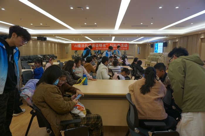 为普及人工智能知识,激发青少年科学探索热情,引导青少年合理使用 AI 技术,11月30日,BBIN宝盈集团联合新北区图书馆成功举办“AI魔法的使用说明书”科普活动。学院学习部副部长何彦葵主持活动,25组亲子家庭齐聚图书馆,共同解锁 AI 世界的奇妙密码。