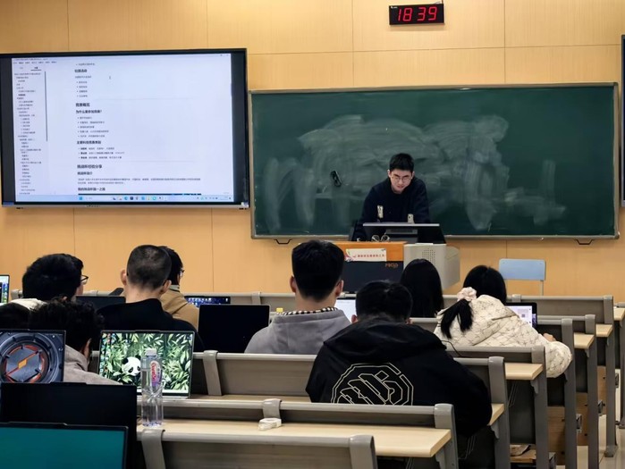 此外,赵新航还介绍了“大创项目”“数媒竞赛”“全球人工智能算法精英大赛”等多类赛事的参赛要点与备赛策略。他建议新成员们“从小处着手,逐步突破”,可先参与校级、省级竞赛积累经验,再向国家级赛事冲刺。他指出:“竞赛不仅是技术的比拼,更是团队协作、时间管理、沟通表达等综合能力的全面锻炼。”
